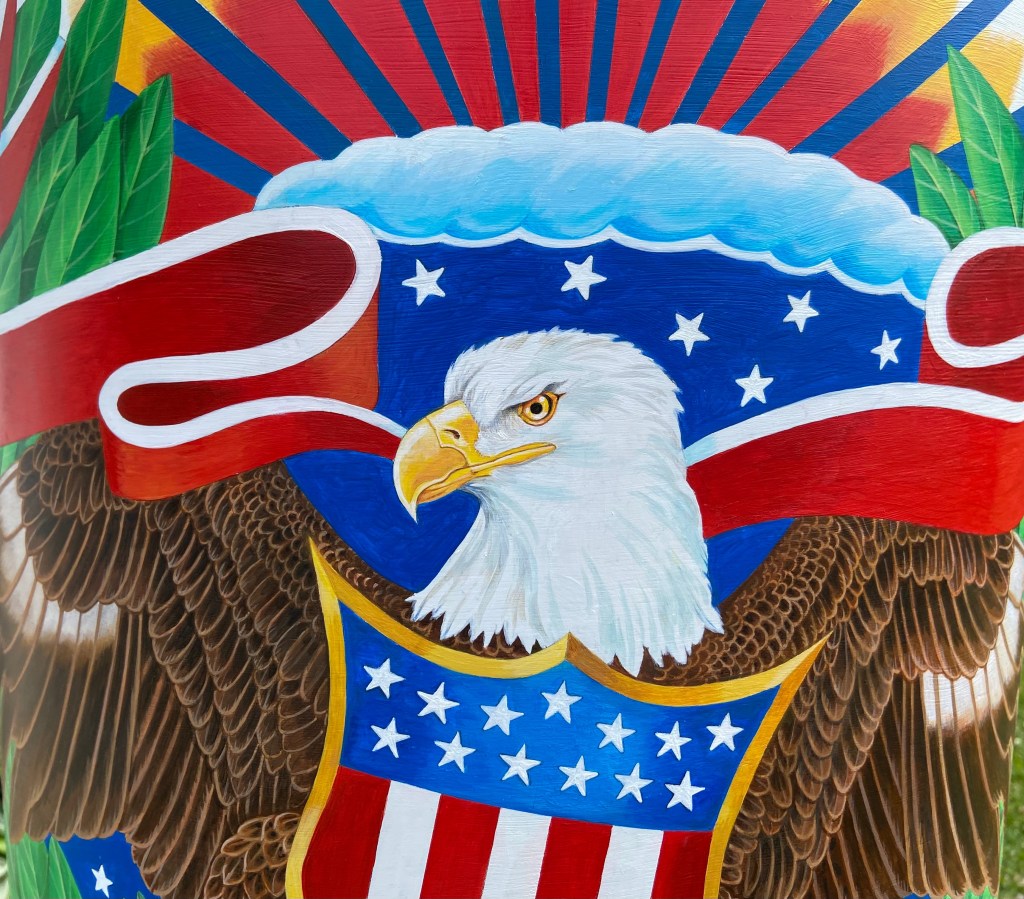 Here is one of my hand painted drum commissions. I painted it in acrylics on a wood drum shell. The second is the shell on it’s side with the first coat of varnish. I am excited to see the rope drum assembled!